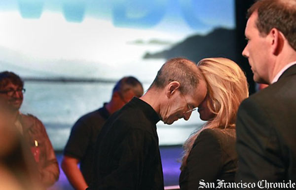 Al termine della presentazione Jobs è poi, tradizionalmente, tornato a salutare quelli delle prime file. Tra loro c’era anche la bionda moglie Laurene Powell, di 9 anni più giovane. Lo scatto fatto dal San Francisco Chronicle è veramente significativo, con il co-fondatore di Apple che appoggia la testa a quella della moglie (sempre vicina al suo Steve da 20 anni e qualche mese, anche nei momenti difficili), come massimo affettuoso saluto da dare in pubblico. Nemmeno il privatissimo Jobs ne ha potuto fare a meno.