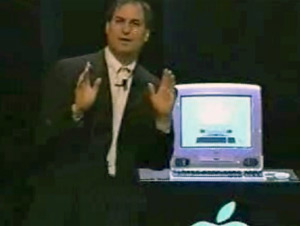 Via le porte ADB, dentro le USB. Via i floppy e basta. Una maniglia per estrarlo dalla scatola e pochi cavi da collegare per iniziare subito ad usarlo. "Quasi più bello dietro di quanto lo sia davanti, certamente più bello degli altri PC […] viene da un altro pianeta, il bel pianeta dove ci sono dei designer migliori" diceva Jobs mostrandolo per la prima volta dal palco del Jacob Javits Convention Center di New York City.