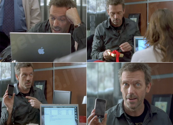 Mentre il dottor House sta leggendo un messaggio di posta elettronica di Maggie (Janel Moloney) sul caso medico in esame, da un MacBook Pro, spacchetta il regalo di una "pesca" aziendale che lui avrebbe vinto tra gli internisti. Il diagnosta dell'ospedale universitario Princeton-Plainsboro ci trova un iPhone (senza la scatola originale per motivi che capirete guardando la puntata) e, appena lo vede, esclama un esagerato "wow".