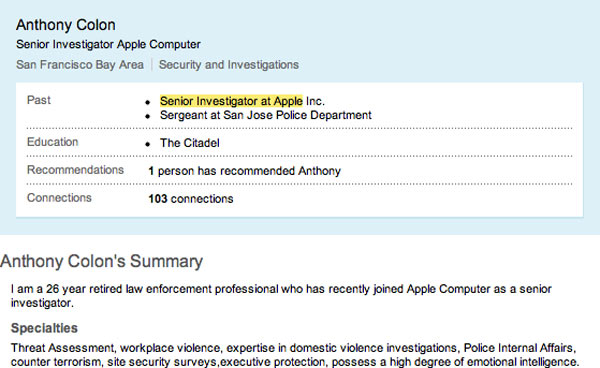 Uno dei tizi che ha bussato alla porta di Calderón avrebbe anche offerto 300 dollari per la restituzione del prototipo smarrito. Se Calderón ci ripensava poteva telefonare a tale Tony (poi identificato in Anthony Colon, impiegato di Apple come investigatore, anche se il profilo LinkedIn è stato fatto sparire).
