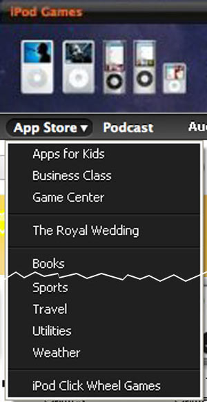 Come potete vedere, nel menu di iTunes Store non compare più la categoria dei giochi per iPod con rotella cliccabile.