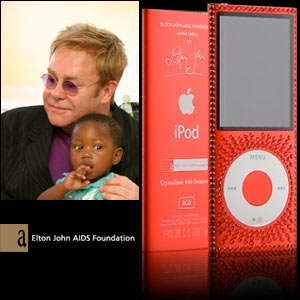 Gli specialisti londinesi di Goldgenie hanno creato 900 speciali Elton John iPod, 100 per ognuno dei 9 colori disponibili (compresi quelli rossi che dovrebbero essere esclusiva dell'Apple Store) e parte degli incassi andranno all'EJAF.