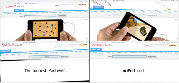Apple ha scelto la pagina di Yahoo! Games per promuovere l'iPod touch come console portatile capace di far divertire tutti con uno dei tanti giochi presenti su App Store.