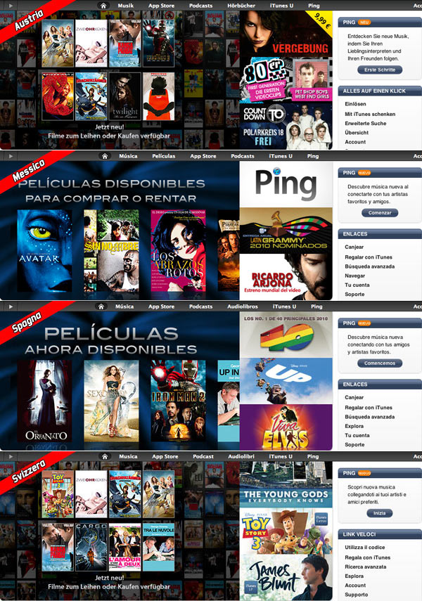 Come si può vedere anche i 3 paesi citati prima si sono adeguati con la sezione film, in quello elvetico c’è anche un link a 53 lungometraggi in lingua italiana, sono tutti stranieri, però. Tuttavia a Cupertino nemmeno sanno di avere un iTunes Store in Austria (lo segnaliamo da aprile) e la tabella non è aggiornata.