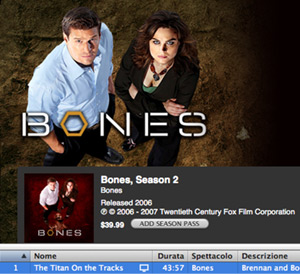 Innanzitutto l'offerta gratuita: questa settimana, per rilanciare la seconda stagione di "Bones" in onda su FOX, viene regalata la prima puntata dell'annata già cominciata con 6 episodi.