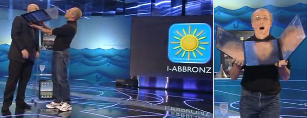 Ma l’estate è ormai alle porte, per prepararsi adeguatamente un grande iPak fa al caso di chi ha la pelle pallida. L’applicazione “iAbbronz” apre il dispositivo portatile e mostra una superficie riflettente apposta per cambiare colore all’epidermide.
