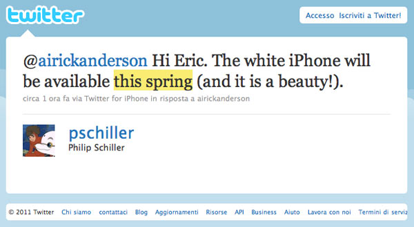 Se ieri il responsabile del marketing di Apple Phil Schiller ha usato il suo personale canale Twitter, che non usa per comunicazioni aziendali, per ricordare che il “bellissimo” iPhone 4 sarà disponibile “questa primavera”, vuol dire che imminenti ritardi non sono più previsti.