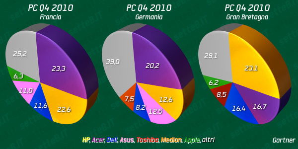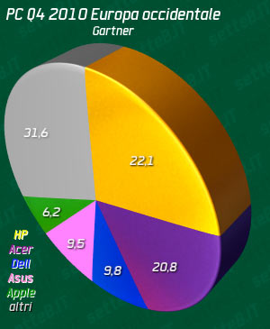 Dopo aver già visto i dati mondiali e statunitensi Gartner calcola le vendite di computer nell’Europa occidentale, per l’ultimo trimestre del 2010.
