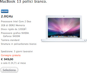 In Italia il rinnovato MacBook in plastica bianca continua a costare 950 euro, esattamente come prima e qualcuno (specialmente chi ama la porta FireWire) lo troverà decisamente attraente.