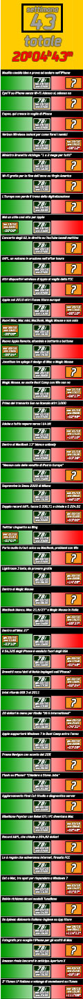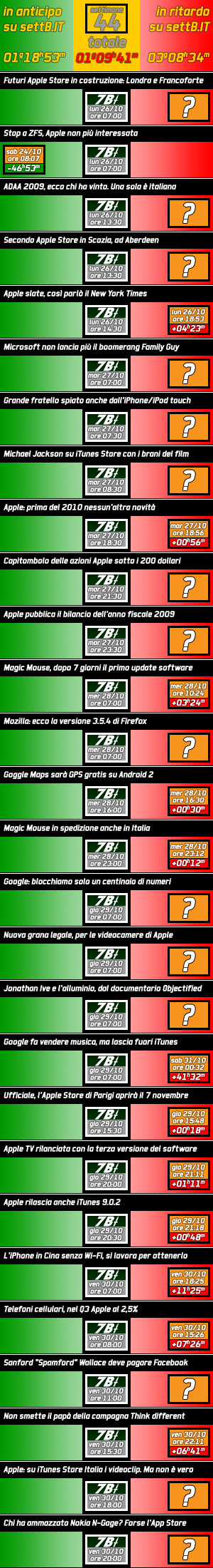 Alcune notizie le hanno scritte in ritardo e con altre (poche) ci hanno preceduto, siccome siamo onesti ne diamo conto. Ma facendo i conti? Ebbene, solo il feed RSS del concorrente rivela gli orari ed il ritardo totalizzato dalle notizie pubblicate in ottobre è di 2.429 ore e 16 minuti, se volete di 101 giorni 5 ore e 16 minuti. Senza contare quelle che, anche se importanti, non sono mai state trattate e che quindi non rientrano nel conteggio.