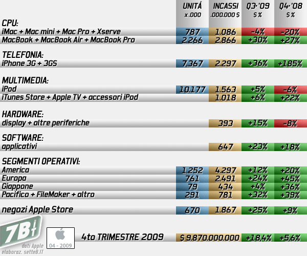 Secondo copione i risultati ufficiali del quarto trimestre fiscale del 2009 (chiuso a fine settembre) superano le previsioni di Apple stessa, con l’utile migliore di sempre ed il secondo miglior fatturato dopo il primo del 2009.