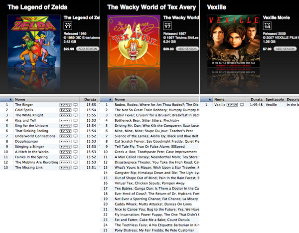 Da Vivendi “The legend of Zelda” e “The wacky world of Tex Avery” sono animazioni del passato (rispettivamente del 1989 e 1997). La prima è ispirata al gioco per console Nintendo con Link e la principessa Zelda nel regno di Hyrule. Le altre sono 25 puntate dedicate a Tex Avery ed ai suoi amici divertenti.