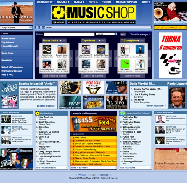 MusicShop elenca la Superclassifica aggiornata di Sorrise e Canzoni TV, vende anche suonerie per telefoni cellulari.