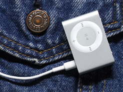 Intanto Apple sfornava il piccolissimo iPod shuffle, che sarà disponibile solo dal mese di ottobre. Sempre più infinitesimali le dimensioni del player di Apple. Lo avreste detto che in poco più nelle dimensioni dell'iPod Radio Remote (il sintonizzatore radio da 3,4 x 2,5 x 0,8 cm che si aggiunge all'iPod) Apple poteva infilare tutto un iPod? Lo ha fatto!