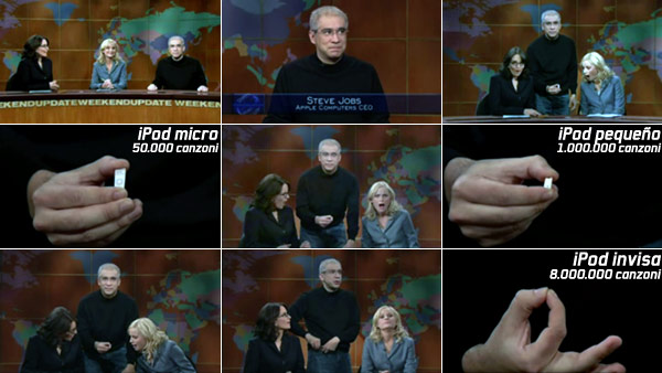 Poco meno di un anno fa, un sabato sera, sulla NBC, lo spettacolo storico "Saturday Night Live" ironizzava e sul carattere di Steve Jobs e sugli iPod che si succedevano velocemente.