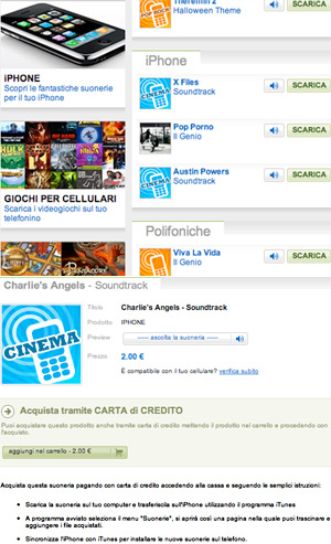 Ne sentivamo la mancanza nella penisola? Pare di sì se il più grande editore nazionale, Mondadori, ha presentato oggi sui suoi organi di stampa il nuovo Mondadori Shop nato solo mercoledì. In grande evidenza la sezione "suonerie per iPhone", in mezzo ad un ricco catalogo di 1,5 milioni di brani musicali.