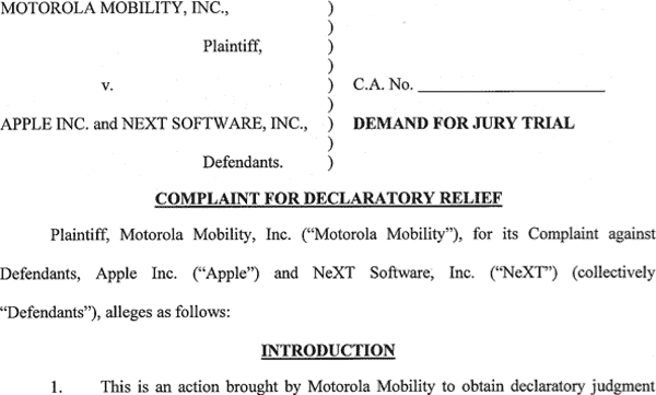 Motorola Mobility, la divisione uscita dal recente spezzatino aziendale, crede che Apple abbia approfittato delle prime invenzioni nel settore della telefonia cellulare (come il 3G di tipo WCDMA, il GPRS, il Wi-Fi 802.11, la progettazione delle antenne, il sensore di prossimità, le sincronizzazioni, l’email mobile e varie applicazioni) per avvantaggiarsi in un settore dove si è ormai affermata.