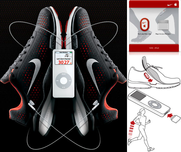 Nike ha intenzione di predisporre molti dei suoi modelli principali di calzature Nike+, aprendo all'esperienza Nike+iPod milioni di consumatori. Grazie alle calzature Nike+ connesse all'iPod nano attraverso lo Sport Kit Nike+iPod, le informazioni su tempo, distanza, calorie bruciate e ritmo vengono archiviate sull'iPod e visualizzate sul suo display; un feedback ascoltabile in tempo reale viene inoltre fornito attraverso le cuffie.