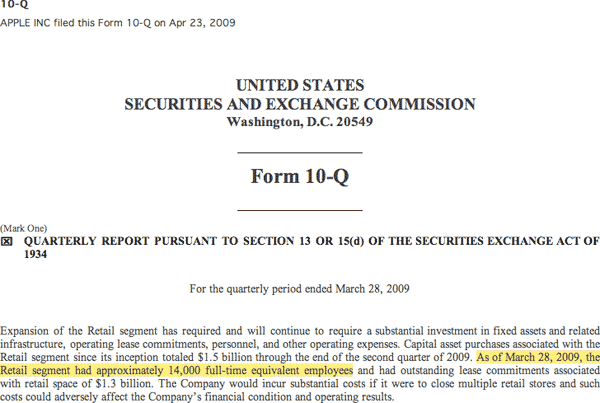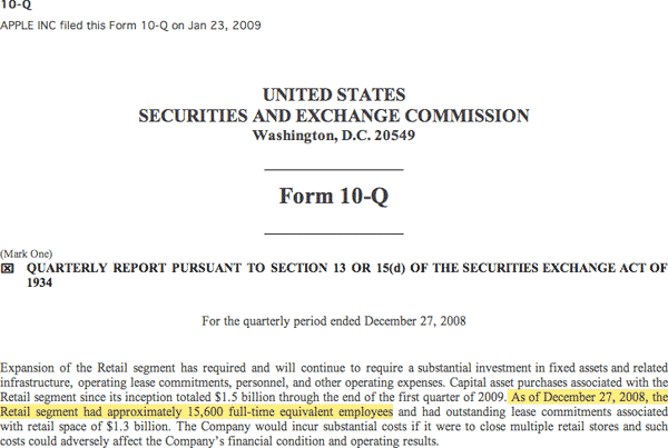 Chi si è preso la briga di leggere il documento 10-Q dovuto alla SEC – Security and Exchange Commission dopo ogni trimestre fiscale ha scoperto che il totale degli impiegati degli Apple Store è calato di ben 1.600 unità.