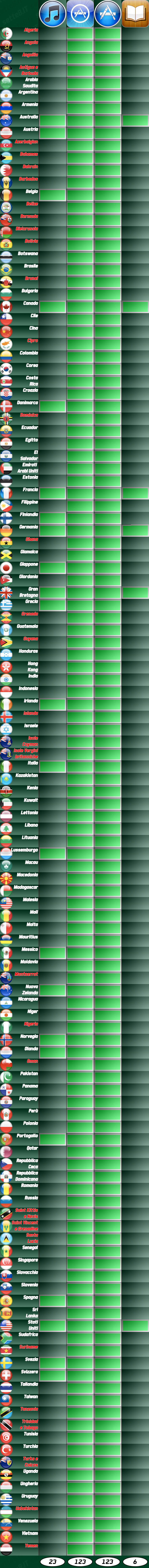 Abbiamo tentato di sopperire alla mancanza di chiarezza di Apple (che ha parecchie carenze in geografia) con questa tabella. I paesi in rosso sono i nuovi aggiunti.