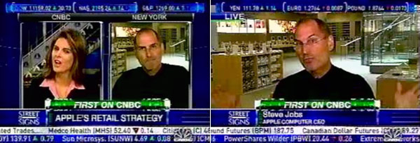 Poche ore prima dell’inaugurazione Steve Jobs era stato intervistato per 8 minuti sul maggior canale finanziario. La CNBC lo ha voluto in diretta dal suo nuovo negozio ed è stata occasione per approfondire alcuni interessanti temi.