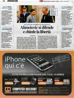 Aggiornamento del 16/04/2008: oggi la pubblicità è a pagina intera e, chiedendo conferma telefonica ai negozi, si viene a sapere che l'iPhone da 8 GB costa 500 euro e quello da 16 GB 600 euro, con addirittura "garanzia ufficiale di Apple".