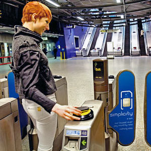 Telecom Italia ha annunciato che entro l’inizio del 2010 sarà possibile salire su un mezzo di superficie oppure in metropolitana pagando la tariffa dovuta, semplicemente avvicinando (20 centimetri) il telefono cellulare alla macchina obliteratrice. L’illustrazione accanto si riferisce alla metropolitana di Londra.