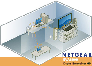 L'EVA8000, che integra un controller Ethernet 10/100 ei il Wi-Fi (802.11g), può combinarsi con un router wireless (802.11n draft) o ad un sistema powerline.