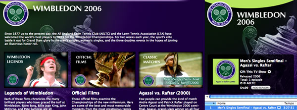 A proposito di tennis e di Wimbledon in particolare, su iTunes Music Store sono disponibili svariati filmati di incontri storici classificati per anno, una goduria per gli amanti di questo sport.
