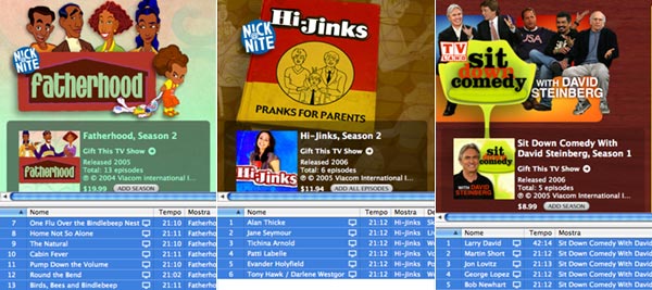 Una Viacom molto attiva su iTMS, porta alcune serie trasmesse dai canali TV Land e Nick at Nite: "Fatherhood" e "Hi-Jinks" oltre al divertente "Sit Down Comedy with David Steinberg".