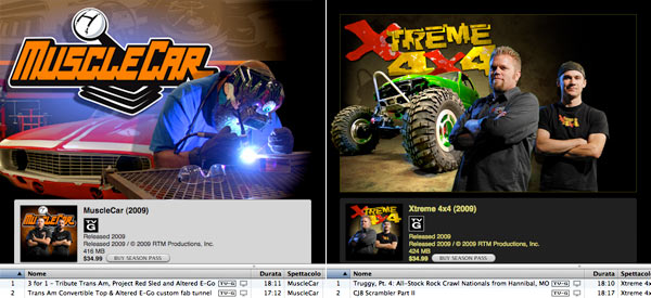 Il canale Spike aggiunge sul listino di iTunes Store USA due produzioni RTM: “MuscleCar” e “Xtreme 4×4“. Dopo le annate 2006, 2007 e 2008 anche la nuova 2009 si aggiunge all’offerta. Protagoniste le vetture sportive esagerate ed i fuoristrada eccentrici.