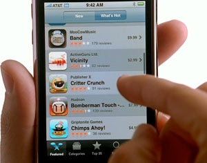 Questa volta Apple ha scelto di promozionare la funzione App Store, ovvero il negozio di Applicazioni presente sia sull'iPhone che sull'iPod touch, oltre che su iTunes. Sono "Vicinity", "Cro-Mag Rally" e "Lonely Planet" i titoli attribuiti a quelli che poi sono i nomi dei software che a Cupertino vogliono mostrare, sono infatti caratteristici per descrivere le tante potenzialità dello smartphone. Tutti si installano in pochi istanti.