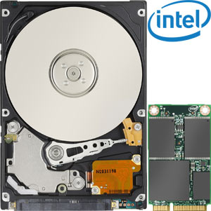 Intel ha impiegato le memorie NAND @ 34 nm MLC che assicurano un trasferimento dati del 60% migliore rispetto ad un tradizionale hard disk con piatti che ruotano a 5.400 rpm, quello illustrato nell’immagine a lato.