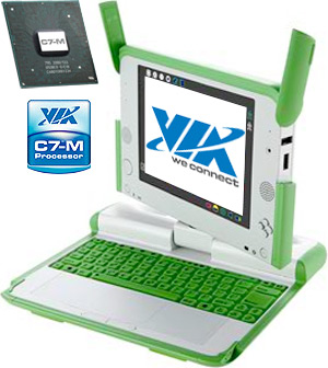 Il progetto OLPC – One Laptop Per Child ha deciso di abbandonare il processore AMD Geode per il C7-M di VIA, che avrà un clock variabile tra 400 MHz e 1 GHz.