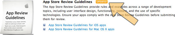 Aggiornamento del 15/02/2011: di conseguenza sono state aggiornate anche le linee guida che devono tentare di seguire gli sviluppatori e, accendendo un cero al patrono, sperare che Apple approvi i loro software nell’App Store.