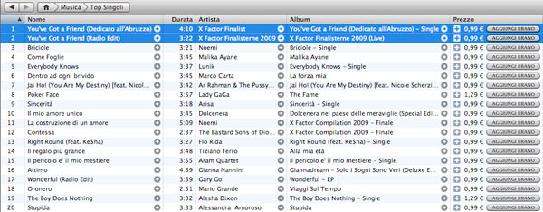 Aggiornamento del 16/04/2009: trascorse alcune ore la classifica è cambiata e nella mattinata di giovedì il secondo brano in classifica non è più secondo, anzi è proprio sparito da iTunes Store Italia.