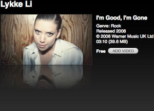 Per la seconda volta da settimana scorsa si replica la nuova abitudine di regalare non solo canzoni ma anche videoclip musicali. E' il turno di Lykke Li con "I'm good, I'm gone".