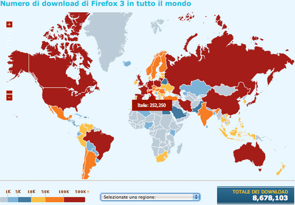 Dalla mappa aggiornata, dopo le 20:16, orario di chiusura delle prime 24 di disponibilità, il contatore indicava cifre record. Sono stati adeguatamente tirati i colli ai server che ospitavano gli installer della nuova versione di Firefox.