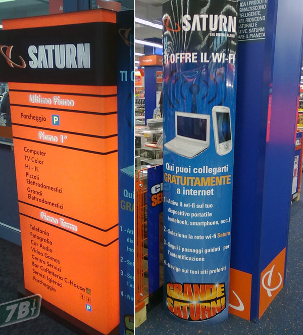 Saturn informa che nel supermercato dell’elettronica ci sarà la copertura del Wi-Fi, non solo per consentire di dimostrare bene i prodotti in vendita (computer, smartphone e tablet variamente assortiti, prodotti Apple compresi) ma anche per offrire ai visitatori il collegamento wireless ad Internet. Non sono illustrate le modalità ma speriamo che siano le più agevoli possibili, ora che si può. Sarebbe proprio un bell’esempio da seguire.