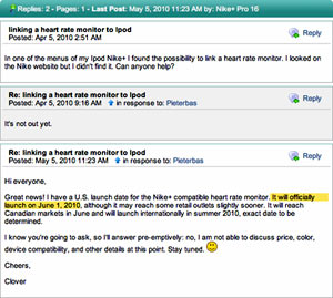 Secondo quanto ha scovato Apple Insider, sul forum di Nike un tale con nickname Nike+Pro 16 si dice sicuro che il primo giugno arriveranno novità.