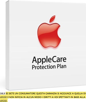 Apple non è mai stata esplicita, ha sempre usato un linguaggio ambiguo. Ora si spera che l’azione dell’antitrust rimetta i diritti dei consumatori al loro posto. Come potete vedere le AppleCare possono estendere la garanzia di Mac/monitor fino a 3 anni, ma per iPad/iPhone/iPod/Apple TV (con un costo da 29 a 79 euro) ed altri accessori solo a 2 anni, il che è completamente inutile visto che questi li assicura la legge dell’Unione Europea.