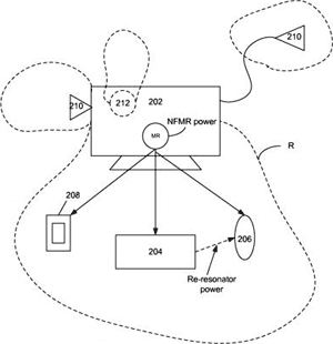 Utilizzando la tecnologia NFMR – Near Field Magnetic Resonance è possibile ricaricare, fino a meno di 1 o 2 metri di distanza, l’energia necessaria per ricaricare la batteria del dispositivo portatile, Apple potrebbe distribuire la ricarica ad induzione da un nuovo accessorio opzionale oppure direttamente dai suoi computer.
