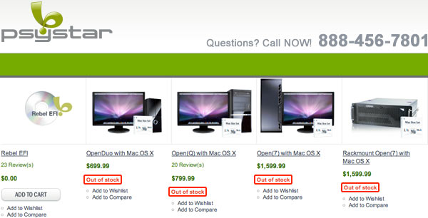 Gli OpenMac, poi Open Computer, non potevano installare Mac OS X, ma Psystar aveva insistito un po’ goffamente. Apple non autorizza più i cloni, dopo la non buona esperienza avuta tra il 1995 ed il 1998 con macchine dotate di processori PowerPC.
