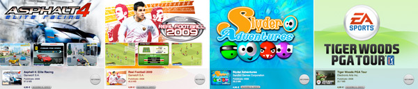 Il primo ed il secondo sono prodotti Gameloft, dedicati agli appassionati delle corse automobilistiche negli scenari più belli ed agli amanti del calcio. Con "Asphalt 4" si può scegliere tra 10 vetture e moto in circuiti di 7 città, sono 5 le modalità di gioco. In "Real Football 2009" è disponibile una ricca scelta tra 290 squadre, alcune nazionali ed altre sono i team più prestigiosi di 10 campionati, le 5 modalità di gioco danno l'opzione del campionato o della Coppa Euro Club.