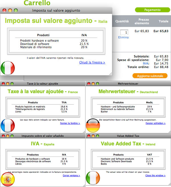 La risposta di Apple è stata: “la VAT – Value Added Tax irlandese è aumentata dal 21 al 21,5% e siccome gli account europei di MobileMe sono venduti da Apple Sales International con sede in Irlanda, la fattura inviata rispecchiava il 21,5% di VAT, in base alle leggi sulle tassazioni UE”.