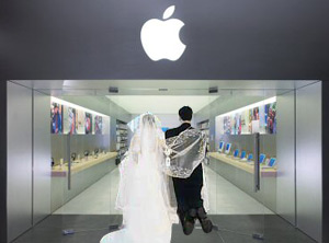 Tartine e calici di champagne all'Apple Store? Solo se alla cerimonia si promette eterna fedeltà ad Apple e che mai, nemmeno in casi estremi, si userà un PC.