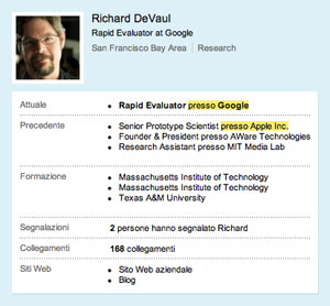 E’ durato meno di 18 mesi a Cupertino, l’ingegnere Richard DeVaul se n’è andato per lavorare a Google.