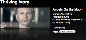 Il videoclip in omaggio questa settimana da iTunes Store USA è "Angels on the moon" di Thriving Ivory.