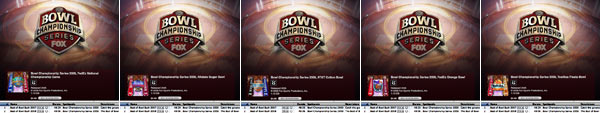 Il mini campionato dei college vedrà scontrarsi Texas Tech con Mississippi, Florida con Oklahoma, Cincinnati con Virginia Tech, Utah con Alabama e Ohio State con Texas. Fox Sports che ha i diritti di queste partite (e non del "Rose Bowl") propone l'acquisto per 5 dollari dei vari bowl che, per ora, incorporano solo il meglio del 2007 e del 2008. Appena saranno giocati i vari "Cotton Bowl", "Fiesta Bowl", "Orange Bowl", "Sugar Bowl" e "National Championship Game" appariranno online anche le partite nelle rispettive stagioni.