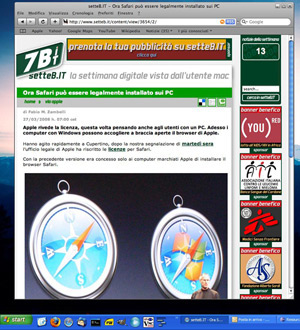 "Trovo fantastica la possibilità di usarlo come browser per i feed RSS come sono abituato sul Mac, gran novità la gestione dei bookmark" ci racconta chi conosce tutte e due le piattaforme, Mac e Windows. S'intende Windows XP, precisa non senza ironizzare chi dal PC vuole il minor numero possibile di fastidi.